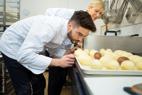 portrait of workers making chocolate eggs