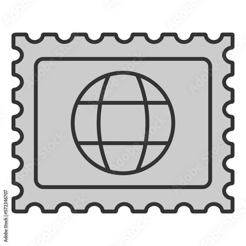 Postage stamp with the image of the globe - icon, illustration on white background, grey style