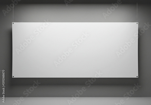 Poster mockup. Blank White poster mockup on a Gray Wall. A clean, neutral backdrop featuring a blank, white banner hanging from a gray wall.