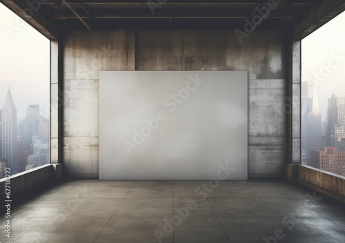 Poster Mockup in a industrial interior. table and a framed poster on a white wall. AI Generative.