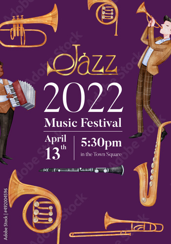 Poster template with jazz music concept,watercolor style