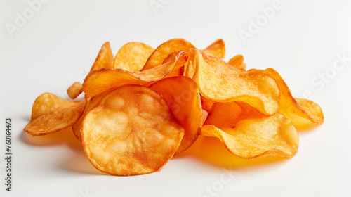 Potato chips pile isolated on white background