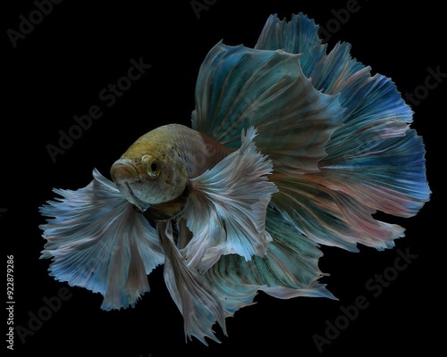 Potrait dancing halfmoon bettafish on a black background