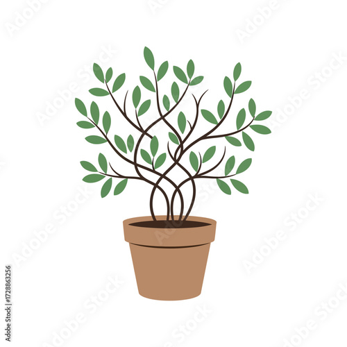 Potted plant with intertwined branches and green leaves elegant decor vector