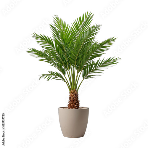 Potted Tree Isolated on White Background with Leaves and Succulents