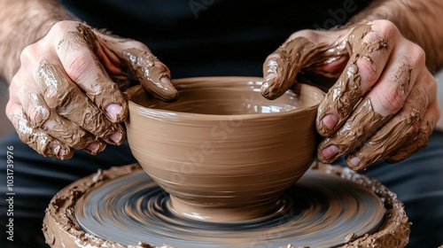 Pottery Wheel Hands Shaping Clay Bowl Artisan Craft