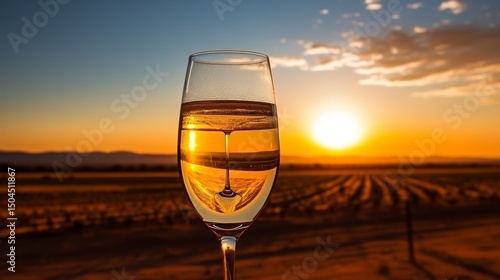 Pouring champagne into crystal glass at sunset a minimalist celebration of the golden hour