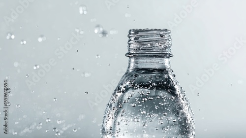 Pouring Water from Glass Bottle with Condensation in Clean Background