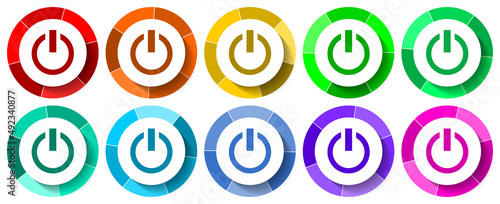 Power icon set, start flat design vector illustration in 10 colors options for mobile applications and webdesign