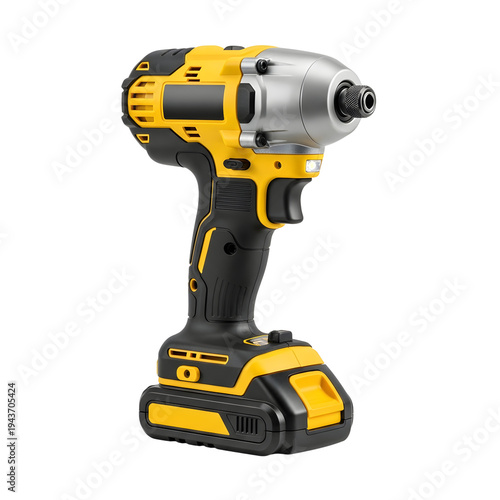 Powerful cordless drill driver in yellow and black color scheme isolated on white background