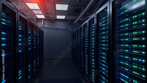 Powerful Data Center Servers and Network Infrastructure: Digital Technology, Computing, and Storage Illustration