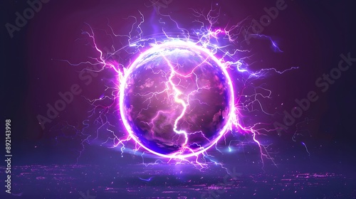 Powerful electrical discharge, lightning strike impact place realistic vector on transparent background. Ball lightning, magical effect design element. Electric energy flash sphere, pain nerve impulse