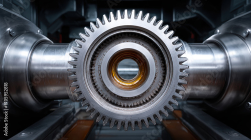 Powerful gear for renewable energy infrastructure. precise machine part showing importance of funding for new technology and industrial development. symbol of engineering