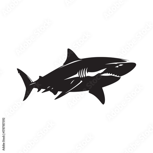 Powerful great white shark silhouette sea predator vector graphic