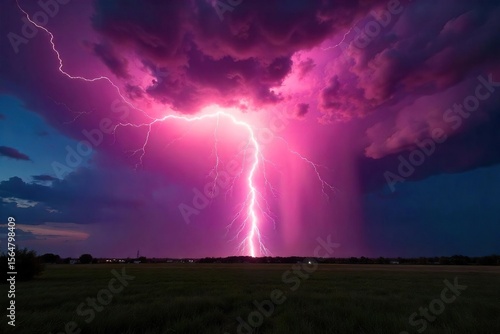 Powerful Lightning Bolt Strikes Dark Landscape During Raging Thunderstorm - Dramatic Night Scene