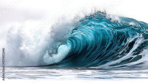 Powerful ocean wave, vibrant turquoise color, breaking over the water's surface, dramatic, and foamy