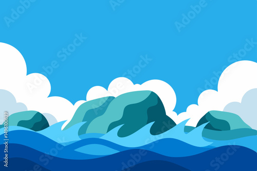 Powerful Ocean Waves Crashing on Dark Rocky Shoreline Background Vector Illustration Background