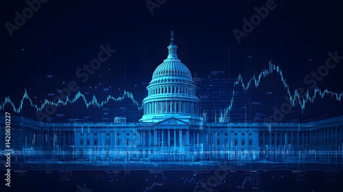 Powerful political-economic visual combining Capitol building and stock graph—ideal for finance editorials, policy analysis, and regulation topics