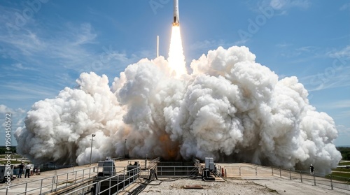 Powerful Rocket Launching into Sky with Massive Smoke Plume.