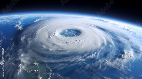 Powerful super hurricane, round eye seen from space