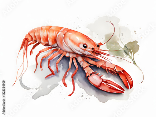 prawn watercolor on white background