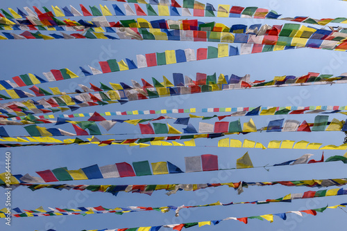 Prayer flags of Swayambhunath temple at Kathmandu in Nepal