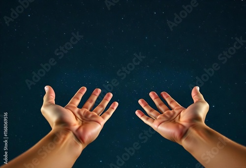 Praying hands open to the sky in the holy night Social media story