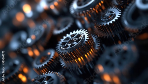 Precise action, fast motion, intricate gears, abstract mechanical design. [action, motion, precision],