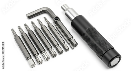Precision screwdriver set with multiple tool bits.