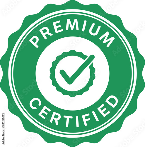 Premium Certified Badge Vector – Green Quality Guarantee Seal with Check Mark for Authentic Products
