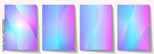 Premium cover design set with pink and blue dots and colorful pattern for cover design, invitation, flyer, wedding card, prestigious voucher, menu. Neon color luxury premium vector background