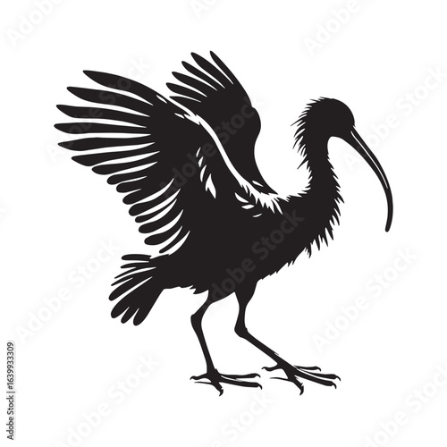 Premium Ibis Silhouette – Ibis Black Vector Graphic for Sophisticated Projects – Ibis Illustration – Bird Silhouette – Silhouette of Ibis