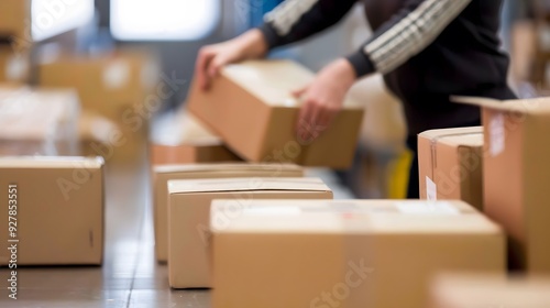 preparing for dispatching, post courier delivery dropshipping commerce retail shipment service concept, closeup.