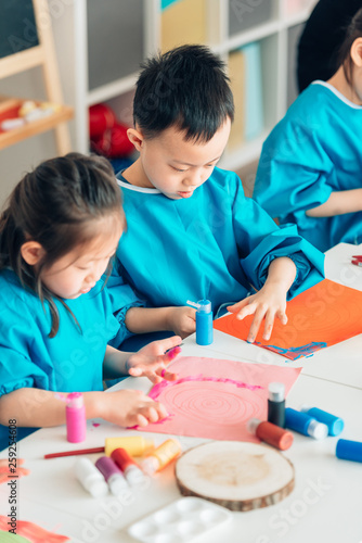 Preschool kids painting in classroom