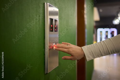 Pressing the elevator button in contemporary high rise buildings signifies modern urban convenience