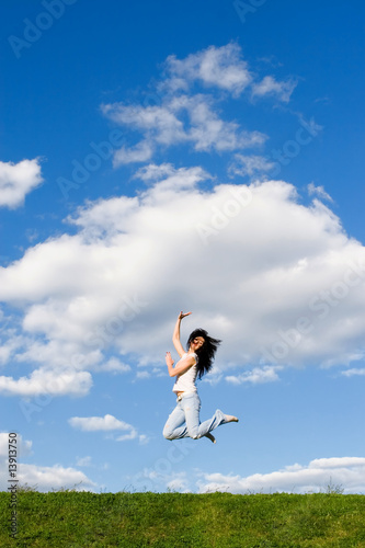 pretty young woman is jumping