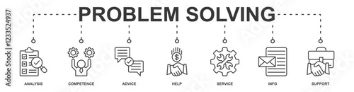 Problem solving banner web icon vector illustration concept with icon of analysis, competence, advice, help, service, info, support
