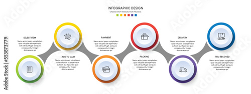 Process of online shopping with 6 steps. Steps business timeline process infographic template