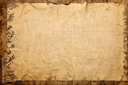 Processed collage of ancient scroll sheet of brown aged paper texture. Background for banner, backdrop or texture for 3D mapping