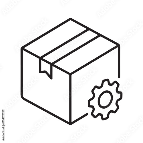 Product Management Icon with Package and Gear Symbol for Manufacturing and Logistics