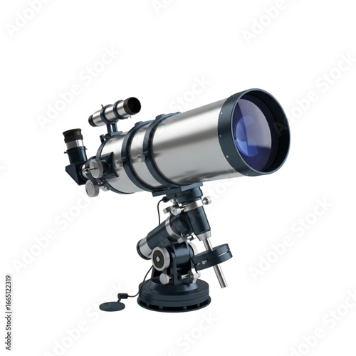 Professional astronomical telescope on a sturdy mount isolated on transparent background