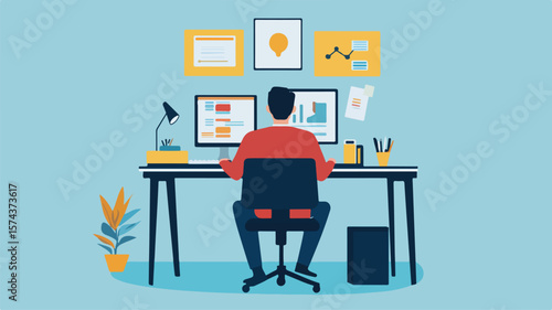 Professional Business Process Management Concept with Man Sitting at Desk