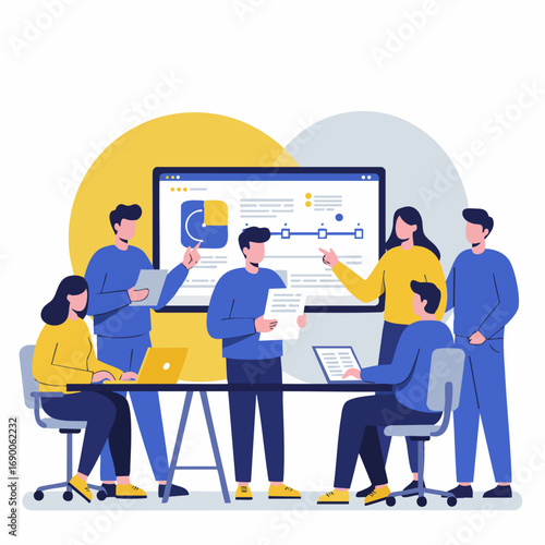Professional business team collaborating on data analysis presentation