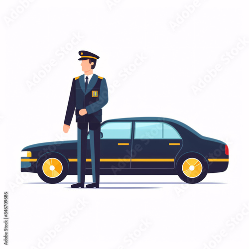 Professional chauffeur service depicted in minimalist flat illustration style against a clean white background.