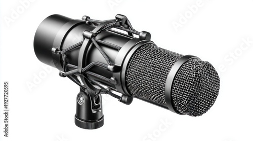 Professional condenser microphone with shock mount for studio recording and broadcasting