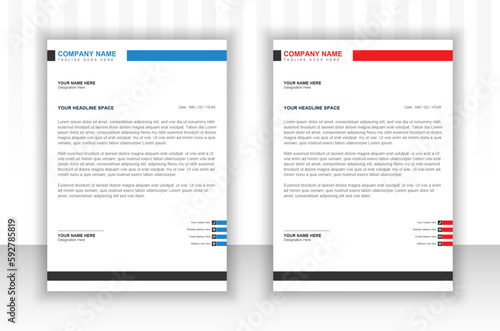 Professional corporate business letterhead design in attractive variations of black and blue and red colors.