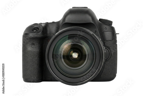 Professional digital DSLR camera front view isolated. Photography equipment.
