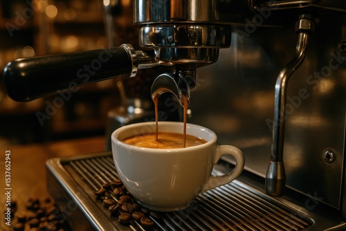Professional Espresso Machine Creating Perfect Coffee with Rich Crema in Artisan Café Setting