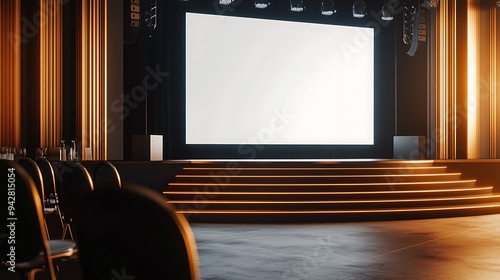 Professional Event Stage with Empty Podium and Big Blank Screen Mockup Ready for Presentations