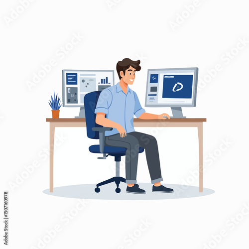 Professional Graphic Designer Sitting at Desk – Clean Modern Style